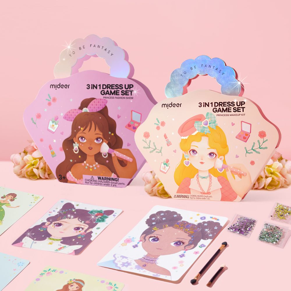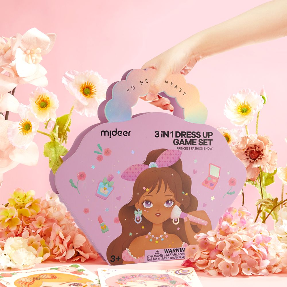Open the creative handbag in the shape of a dressing table and get ready for the princess fashion show.