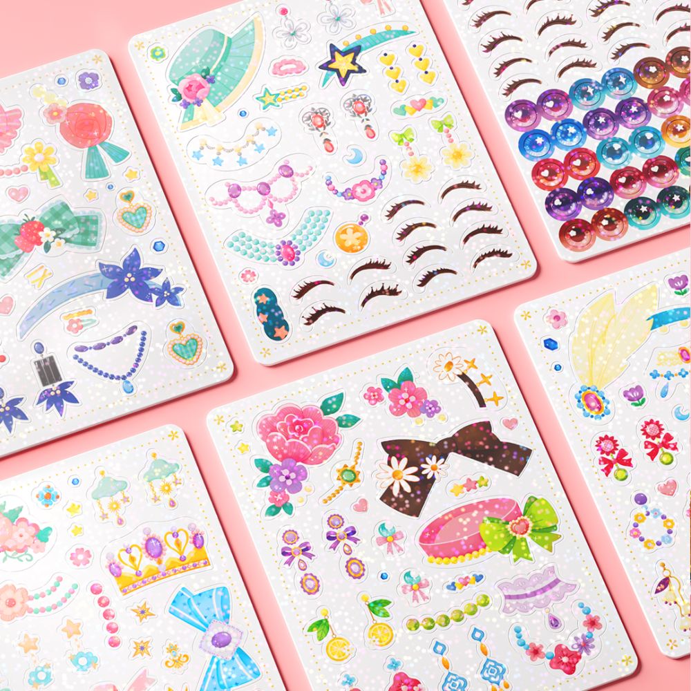 • 6 sheets of creative accessory stickers in the form of earrings, bracelets, crowns, etc., approx. 200 pieces in total