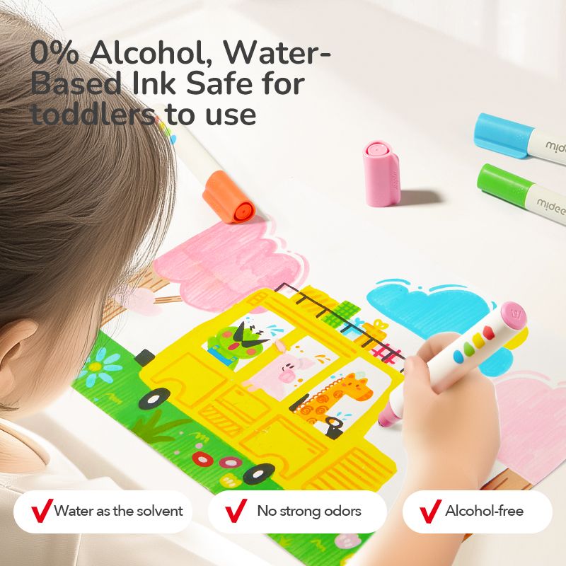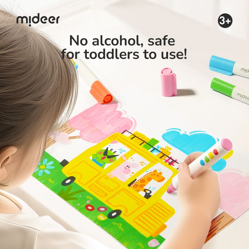 Discover high-quality Mideer washable markers with fine tips, ideal for children's first drawings, coloring, and detailed creations.