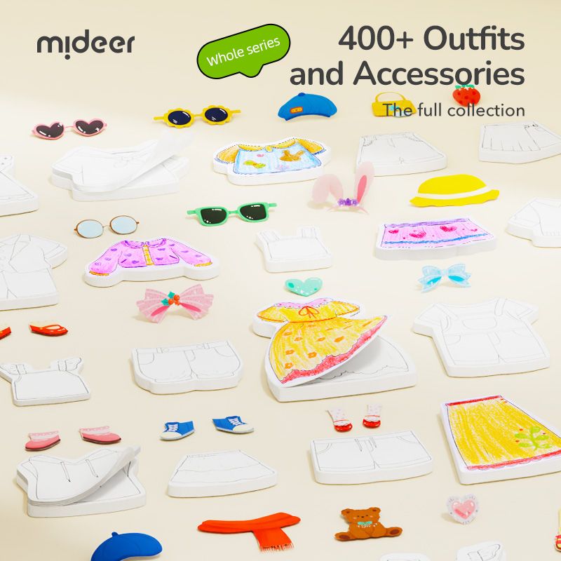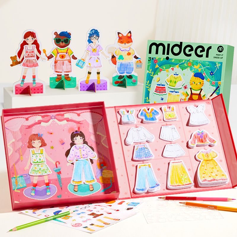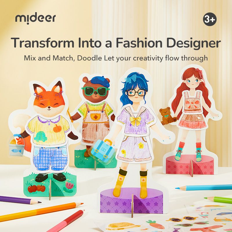 Discover the world of fashion and your own imagination with the creative set Mideer Dressing Dolls!