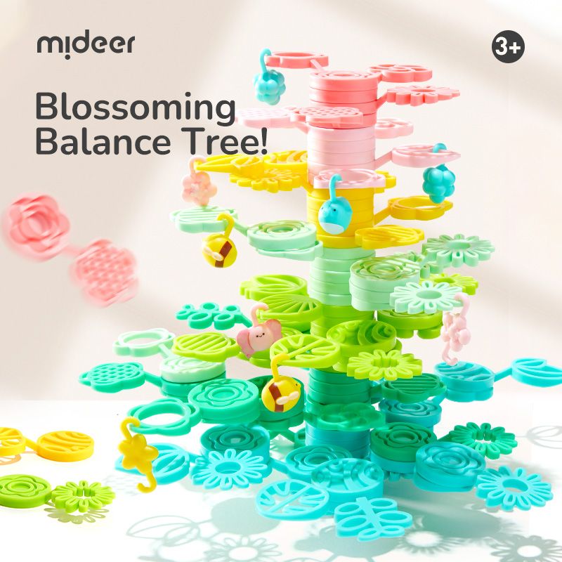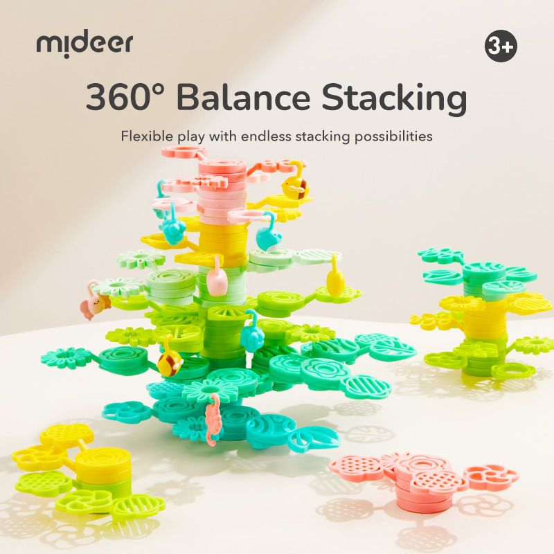 Mideer Magický strom rovnováhy je barevná sada stohovacích dílků ve tvaru listů a větviček, ze kterých děti mohou stavět svůj vlastní strom snů – vysoký, rozvětvený nebo úplně fantazijní.