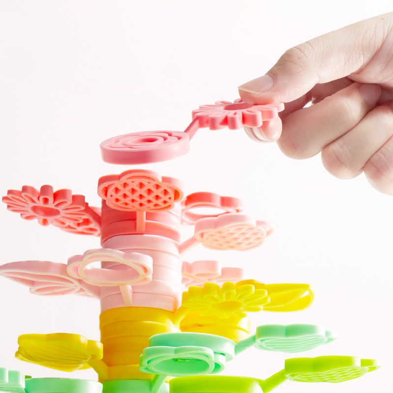 🍃 2 v 1: stavebnice & balanční hra - Děti mohou volně tvořit nebo si zahrát soutěž, kdo na strom přidá víc dílků bez pádu.