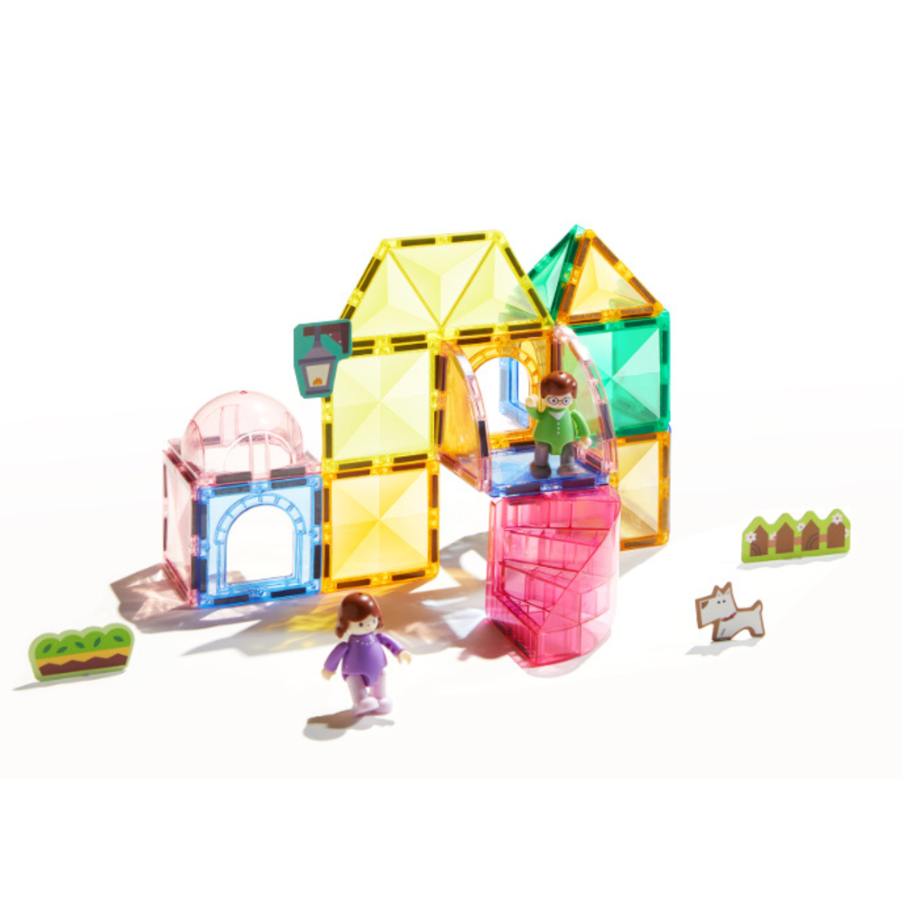 Děti mohou popustit uzdu své fantazii a vytvářet 2D i 3D stavby. Tato originální magnetická stavebnice pro děti nabízí i figurky osob, díky nimž si malí stavitelé mohou vytvářet vlastní scény ze života rodiny.