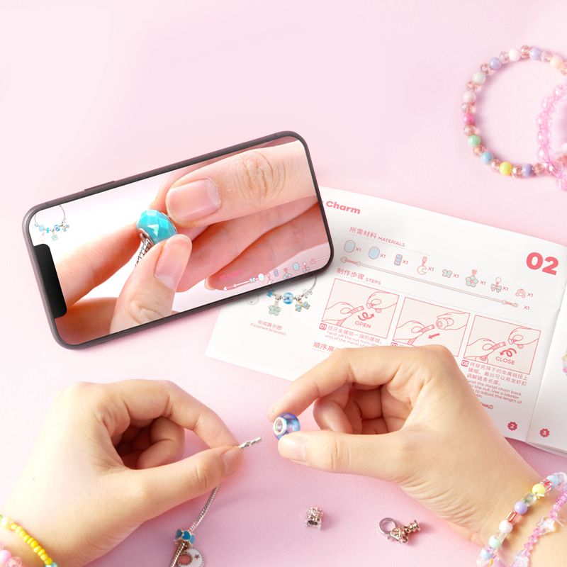 Es ist mehr als 1200 Perlen und Schmuckkomponenten, vier Fläschchen mit farbigem Nagellack, Diamantaufkleber, 6 Schnüre zum Auffädeln und sogar eine Pinzette für präzises Basteln enthaltet.